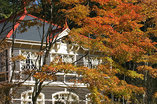 かつて「軽井沢の鹿鳴館」と呼ばれ、軽井沢を代表するリゾートホテルだった建築。現存する国内唯一の純西洋式木造ホテルとして国の重要文化財に指定されている。細部にまで意匠が凝らされた日本建築界の記念碑的な建物だ。