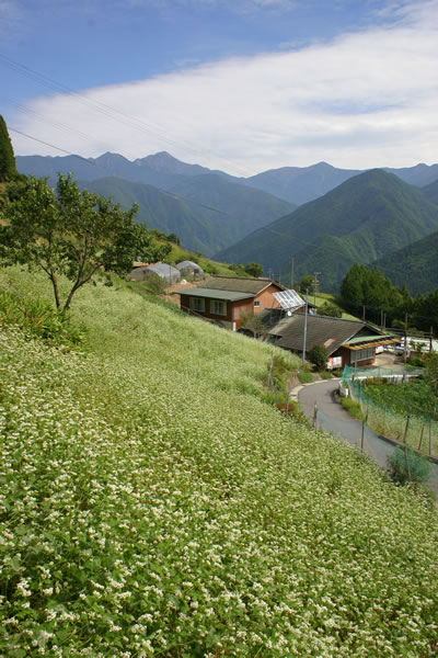 南アルプスとそば畑(遠山郷)