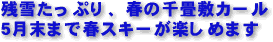 ![]() 千畳敷カール春スキー スキーヤー・スノーボーダーで賑わう春の千畳敷カール。5月末頃まで滑走可能。 |