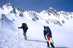 ![]() 春スキー・スノーボード 簡単なTバーリフトが設置されているだけだが、アルプスの真っ只中で滑る開放感はここならでは。 |