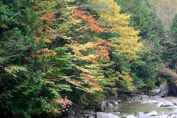 木曽ひのきの美林、赤沢自然休暇林を擁する赤沢渓谷の秋は、
