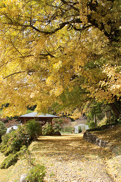 南信州阿南町新野の村松さん宅の庭に植わるイチョウ「十九庵の大銀杏(いちょう)」は