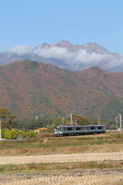爺ヶ岳と大糸線(大町市)