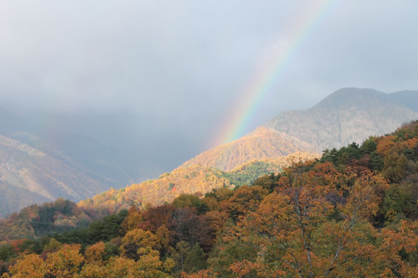 虹と紅葉の山々(安曇野市) |
