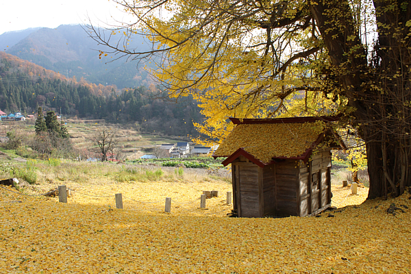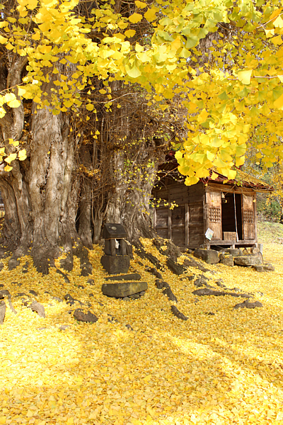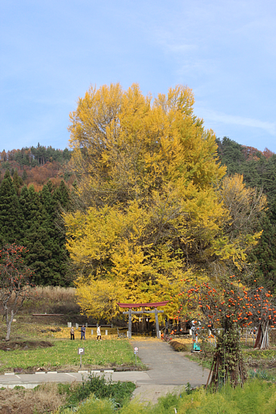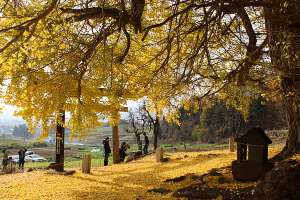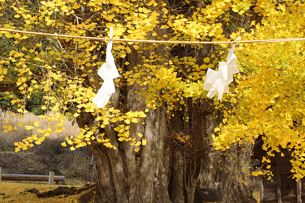 のどかな丘陵地帯にある「神戸の大イチョウ」は、樹齢500年超、高さ36m、幹周11mの大イチョウ。
