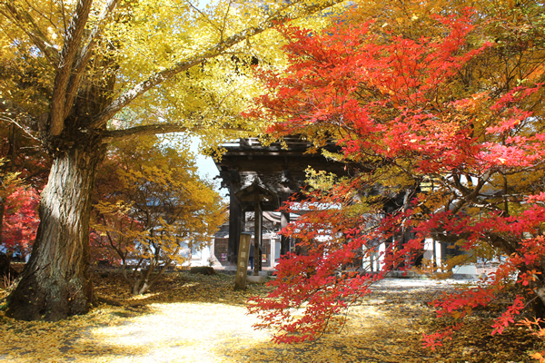霊松寺は安曇野大町市、北アルプスを望む山あいにある曹洞宗の古刹で紅葉の名所。