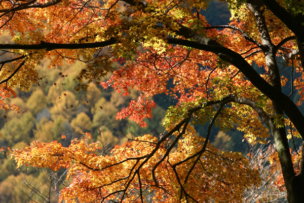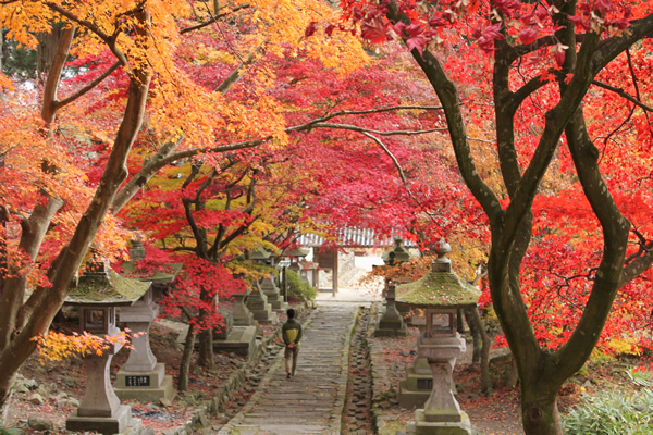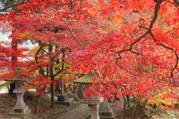 100本以上あると言われるモミジが境内を埋め尽くします。