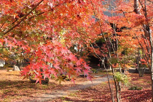 小さいながらも手入れの行き届いた苔のある石庭と、カエデの見事な紅葉が美しい古刹。
