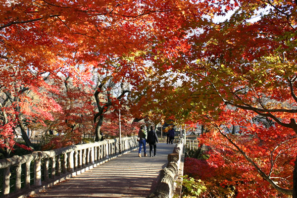 日本3大桜の名所として有名であるが、250本ものカエデの紅葉に包まれた秋も素晴らしく、