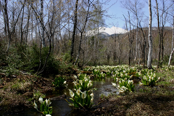 池や小川、湿原などが点在する乗鞍高原一の瀬園地。 雪解けとともに花開くミズバショウにはじまり、 スモモの花、ミツガシワ、レンゲツツジ、キンポウゲなど