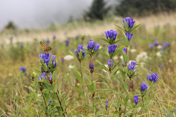 標高約1,700メートル、須坂市五味池破風高原大平地区では自生のエゾリンドウが一斉に咲き誇り、 初秋の高原を青紫色に彩ります。