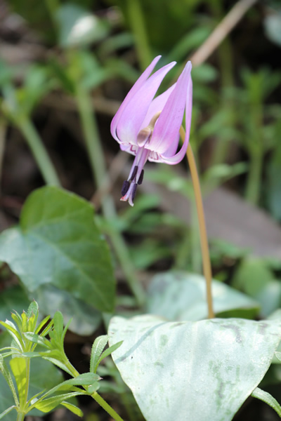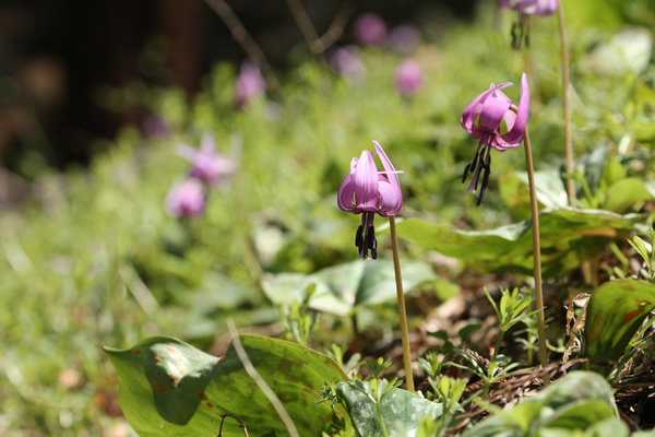 信州最大の温泉郷、千曲市戸倉上山田温泉から歩いて10分ほどの所、八王子山の麓の佐良志奈(さらしな)神社の境内にある自生するカタクリの群生地。地元のボランティアの皆さんが手入れし守っています。