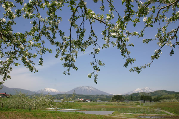 北信濃は信州を代表するりんごの産地。飯綱町大原地区周辺は、黒姫山、妙高山、
