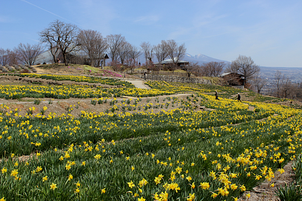 信州国際音楽村 すいせん (上田市生田 見頃4月上旬〜中旬) 信州国際音楽村のすいせんは、信州上田の早春の風物詩。 浅間山を正面にする千曲川のほとりの小高い丘には、約3000uに10万本の色鮮やかな 黄色いすいせんの花が咲きそろいます。花の観賞(入場無料)の他、切り花、 球根および地元特産品の販売、すいせんの草木染め体験などのイベントも予定。