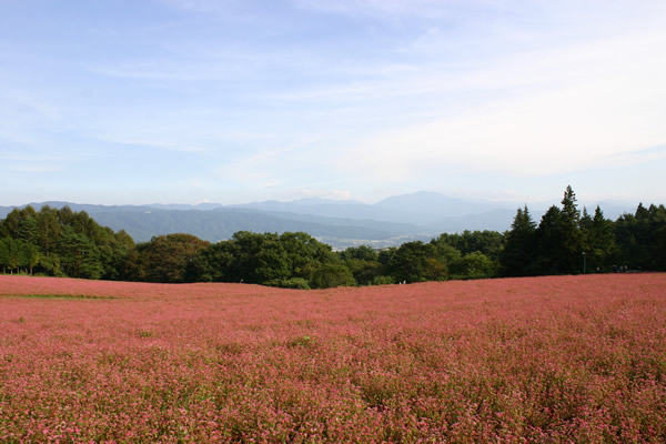 南アルプスを望む東京ドームほどの広さ約4.2haの広大な畑に、 一面赤い絨毯を敷いたように赤そばの花が咲き誇ります。 日本では珍しい赤いそばは、遠くヒマラヤの地から持ち帰られたそばの実で、 品種改良により「高嶺(たかね)ルビー」と名づけられています。 問/箕輪町役場 電話:0265-79-3111(代表)