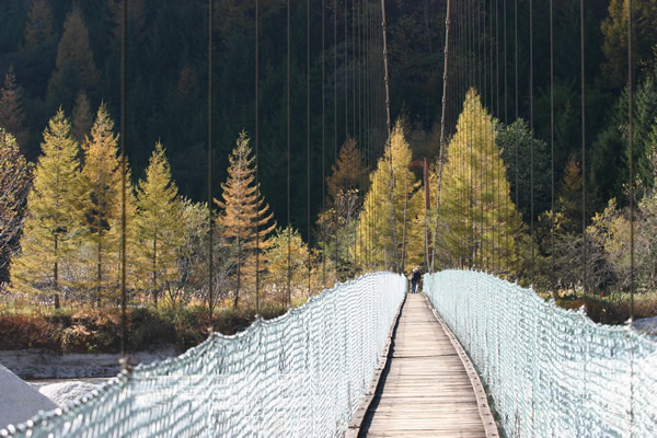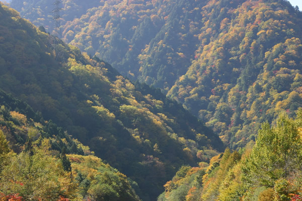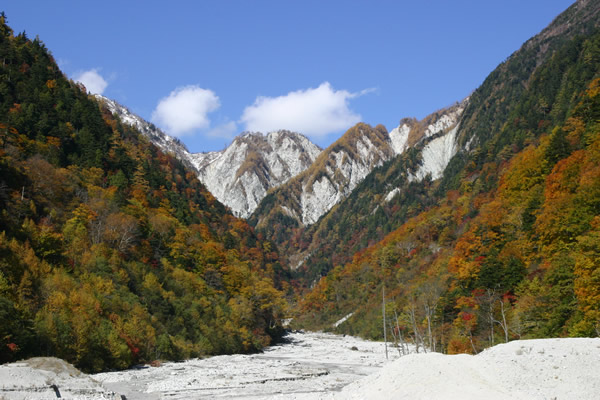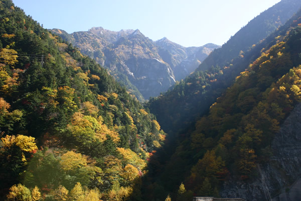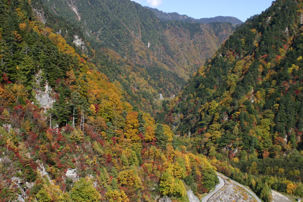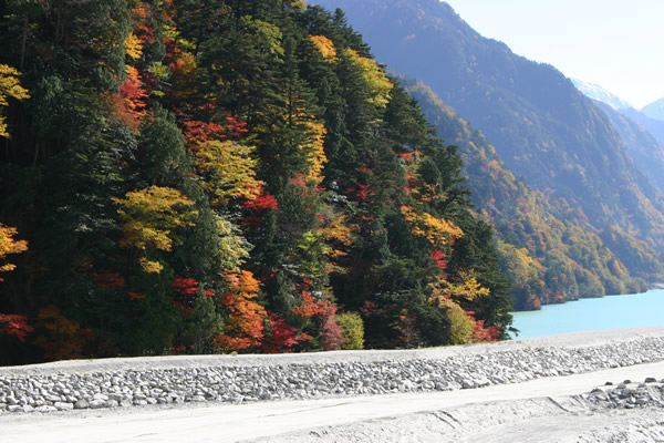北アルプスの麓のスケールの大きな紅葉シーンが楽しめます。 ※槍ヶ岳を源流とする水俣川が合流する高瀬川は、