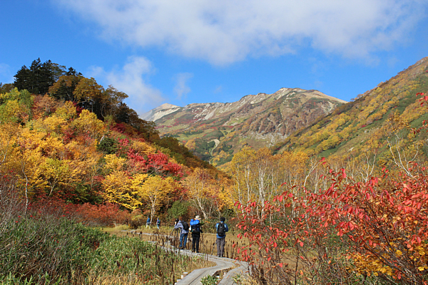 【栂池自然園】 標高1900m、北アルプスを背にした日本有数の高層湿原で、 信州屈指のスケールの大きな紅葉スポットです。 ナナカマド、ダケカンバのなどの紅葉に彩られた、錦繍の秋の風景は圧巻。 一周約3時間30分の遊歩道が整備され、紅葉トレッキングが楽しめます。 (紅葉の見頃 9月下旬〜10月中旬、栂ノ森付近は10月中〜下旬) 紅葉状況