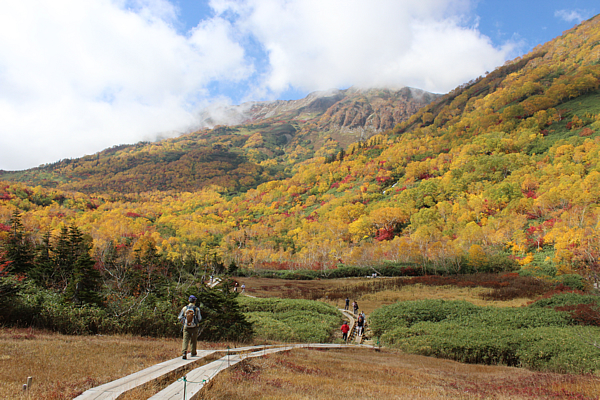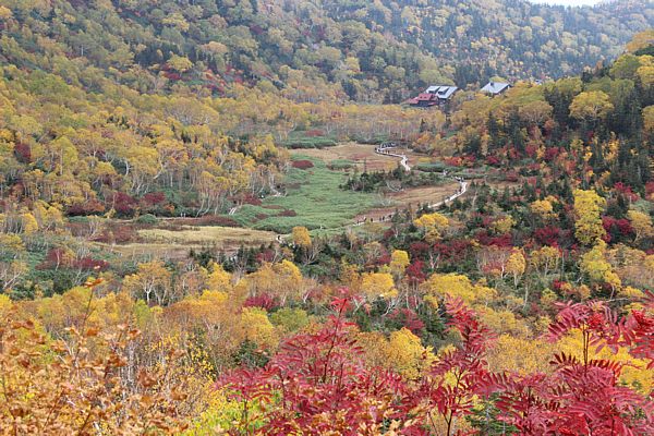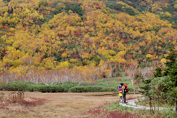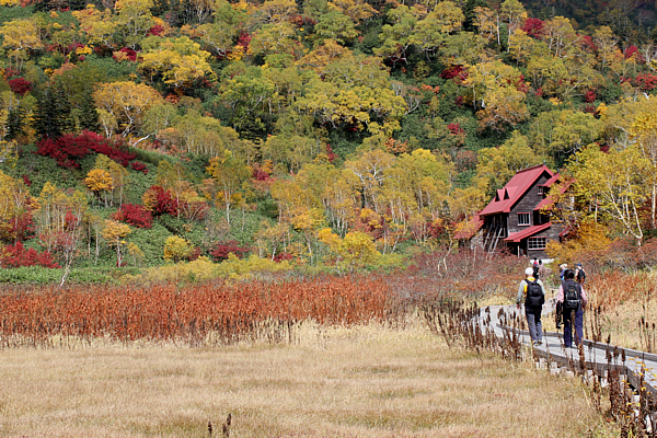 紅葉の山々と湿原の中を巡る、 一周約3時間30分の遊歩道