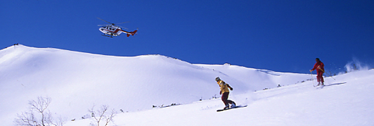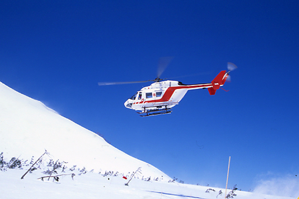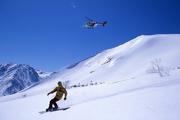 | 白馬乗鞍岳直下に広がる、天狗原の大雪原へヘリコプターでひとっとび。雄大な白馬連峰を眺めながら、人影のないパウダースノーの斜面や閑静な林間コースと、壮大な自然の中を滑走する栂池高原白樺ゲレンデまで約17kmの超ロングコース。ガイドさんがついたツアーでは、さらにエリアを広げて新潟県境まで足をのばすことも。ヘリスキーの醍醐味を余すところなく堪能できるのが、栂池ヘリスキーの魅力だ。 |