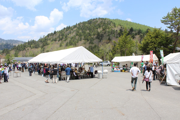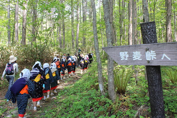 映画「ああ野麦峠」で有名な野麦街道。戦前に飛騨の農家の娘たちが、危険な峠道の野麦峠を越えて信州の製糸工場へ働きに出て、生糸の生産を支えた姿を伝えた映画であるが、この日は、工女姿の女性と一般参加の人々が、新緑が眩しい野麦街道距離1.3qを歩く記念山行を行い、往時を偲びます。伝統芸能披露、採れたての山菜など特産物等の販売なども。