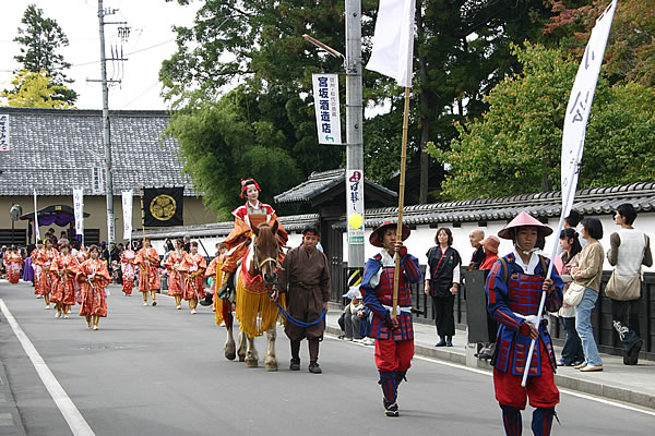 長野市松代町は武田信玄、上杉謙信の古戦場川中島の対岸にひっそりとたたずむ山あいの町。由緒ある武家屋敷や神社仏閣、泉水が流れる町並や町家の庭園、大名道具の 数々を収めた宝物館など、貴重な文化財が数多く残り、大名家真田十代の歴史が培った城下町文化を現在に伝えています。「松代藩・真田十万石まつり」は毎年秋恒例の 一大イベント。大名行列をメインに、音楽会、フリーマーケットなどの催し物が。問 /長野商工会議所松代支所 026-278-2534