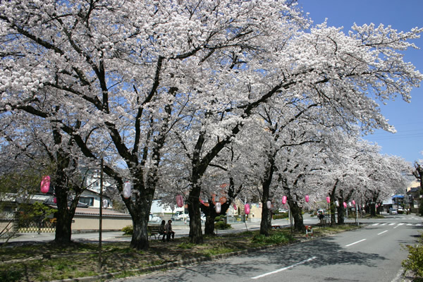 飯田市の中心街、大宮通り400メートルを彩る見事なソメイヨシノの桜並木。御衣黄など珍しい桜もあります。開花時には桜の花のトンネルが。