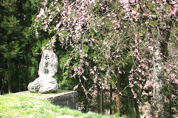 是より木曽路の碑 (塩尻市贄川桜沢 4月下旬〜5月上旬)