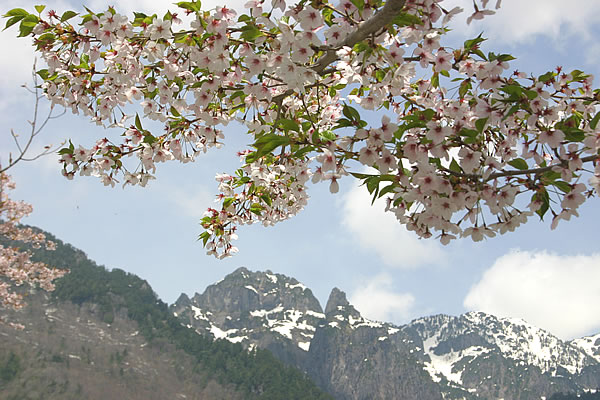 北アルプスと桜 (奥飛騨・新穂高中尾 5月上旬〜中旬)