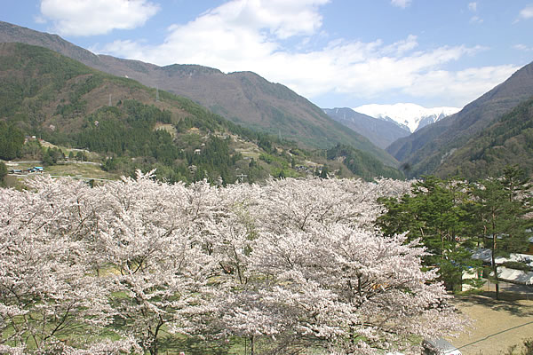 南アルプスの麓の小さな村、大鹿村。小渋川の河畔には約3000本の桜が咲き乱れ、残雪の南アルプス赤石岳と春ののどかな山村を眺めながら、桜を楽しめます。農村歌舞伎でも有名な「大鹿歌舞伎」は春と秋に公演。(中央道松川ICから22km、40分) 問/大鹿村役場 TEL:0265-39-2001