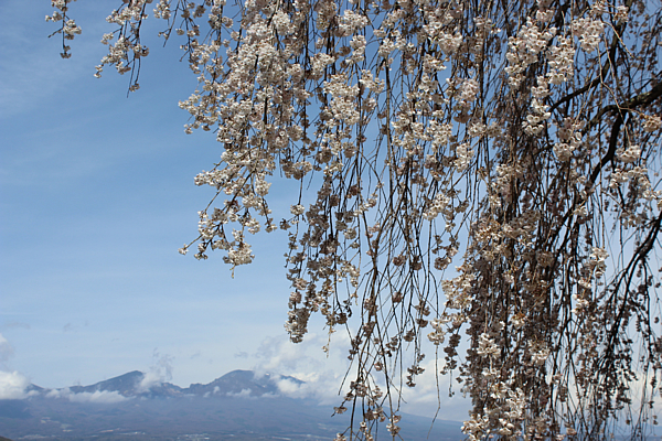 五郎兵衛米で知られる長野県でも有数の米どころ、旧浅科村の丘陵地に立つ一本桜。江戸時代、全ての私財を投じてこの地を開拓し、その後何ら私することがなかった市川五郎兵衛に感謝した村人たちが、五郎兵衛の没後100年目の年に神社を創建。その時、五郎兵衛の故郷である群馬県から桜の苗木が記念樹として贈られるが、苗木を貰いに行った村人達は通行手形を所持しておりませんでした。しかし五郎兵衛の偉業に感動していた関所役人は村人達を温情で通関させたと伝えられています。「関所破りの桜」という呼び名はこれに由来。浅間山とこの田園地帯を望む桜は、写真愛好家の人気スポットです。(樹齢推定250年、幹回り3.5メートル)