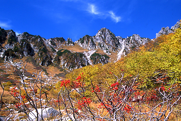 南アルプスの大パノラマとナナカマド、 ダケカンバの紅葉が圧巻です!